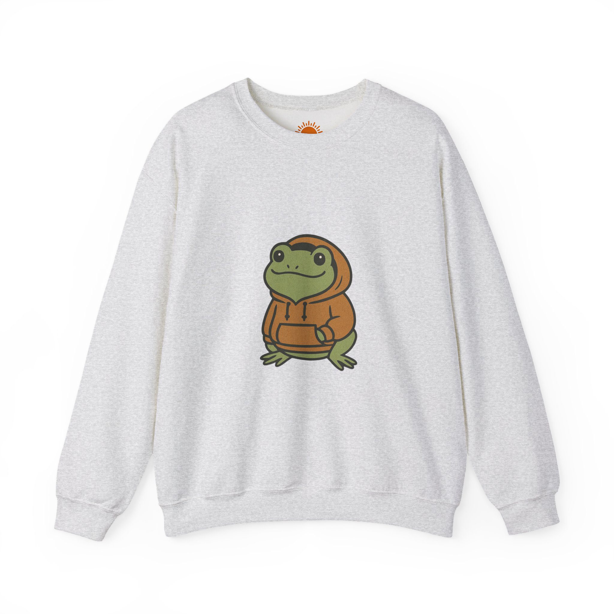 Soft, cozy, and quietly playful — this crewneck brings a friendly frog in a warm hoodie to everyday wear. The illustration sits centered on a clean white sweatshirt, giving a subtle, whimsical vibe that reads calm and approachable. Built from a medium-heavy cotton-poly blend, it holds shape through washes and keeps its soft hand against the skin. Wear it layered for crisp mornings, or lounge in it while sipping tea and scrolling through a slow afternoon. The embroidered-ready placement and durable stitching mean this piece can age gracefully with everyday life, becoming that familiar, comfortable layer you reach for when you want low-key charm and steady comfort.